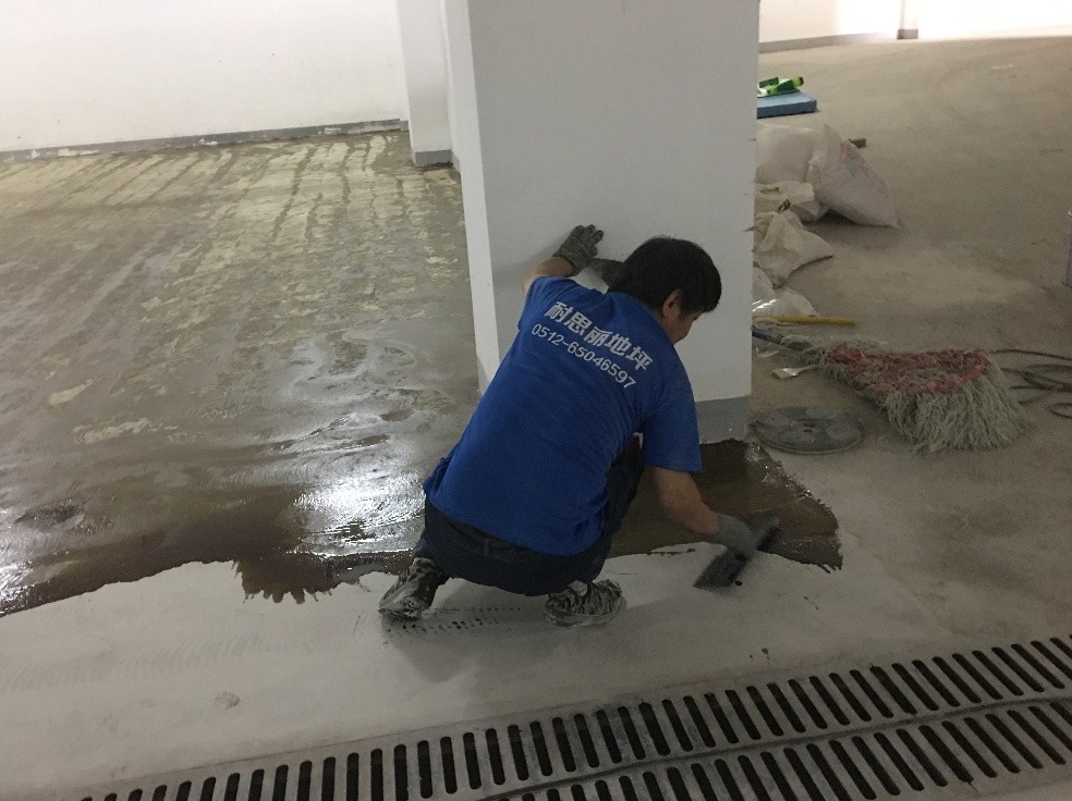 昆山地下車庫做耐思麗止滑地坪進(jìn)場施工