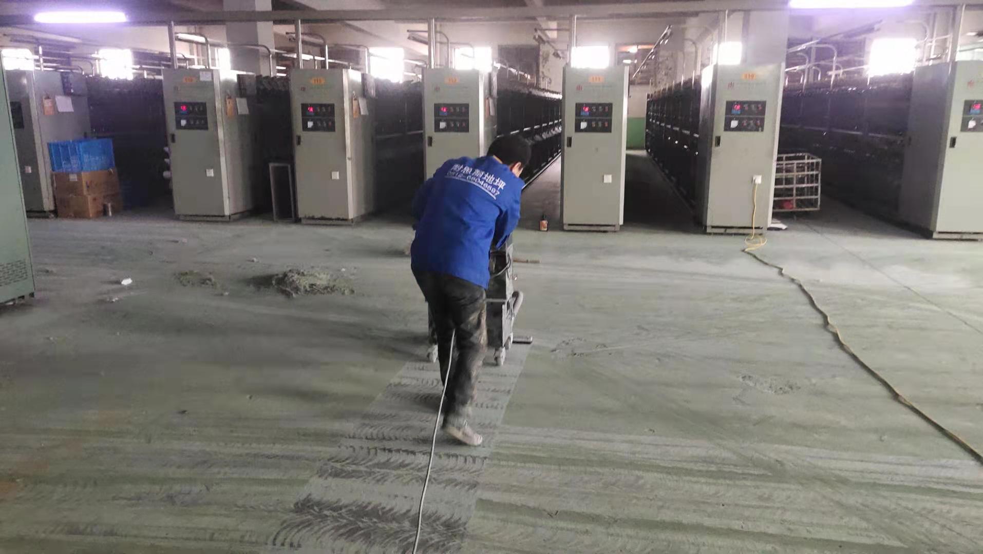 吳江紡織企業(yè)老金剛砂地面跑砂改造聚氨酯超耐磨地坪進場施工